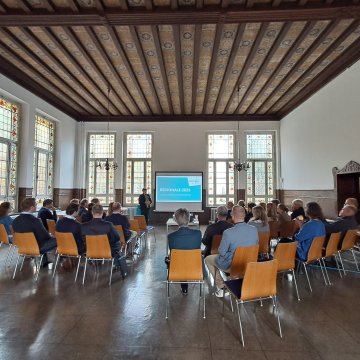 Neues aus der REGIONALE-Welt Filtern nach Jahr 2025202420232022202120202019201820172016 19.12.2025 Entwurf für den Marktplatz in Waldbröl ausgewählt 17.12.2025 Fortschritte auf den RadPendlerRouten 05.12.2025 Video zum Kongress „Alles Ressource!“ online 04.12.2025 Aufstellungsbeschluss zur Revitalisierung der ehemaligen Textilfabrik HPC in Radevormwald 03.12.2025 Lenkungsausschuss: Weitere Projekte wer-den umgesetzt 02.12.2025 Inspiration für die (Wieder)belebung von Brachflächen 20.11.2025 KulturForum Burscheid eröffnet 20.11.2025 Haus Hembach eG begeistert bei den „Tagen der offenen Gaststätte“ 07.11.2025 Inspiration für das Waldkrankenhaus in Windeck 30.10.2025 Kreislaufwirtschaft statt Krise: REGIONALE-Kongress setzt Impulse für nachhaltige Ressourcennutzung 27.10.2025 Neue Freizeitflächen am Bahnhof Morsbach feierlich eröffnet 13.10.2025 NEUES SEHEN: Nächste Ausgabe erscheint am 25. Oktober 2025 29.09.2025 Weiter geht’s! …mit dem Waldkrankenhaus in Windeck 25.09.2025 Neues MACHEN!: Innovationsstandorte im Bergischen RheinLand werden sichtbar und verknüpfen sich 24.09.2025 Am Tag der Schiene für Bewegung gesorgt 22.09.2025 Mit Zuversicht in die Zukunft: lit.COLOGNE zu Gast in Gummersbach 18.09.2025 Forum zur Umnutzung von Pfarrheimen setzt neue Impulse 16.09.2025 Tag des offenen Denkmals auf Zanders: Bürger*innen erleben REGIONALE-Projekt hautnah 11.09.2025 REGIONALE-Projekt Grüner Mobilhof startet in die Bauphase 09.09.2025 REGIONALE 2025 auf dem Bergischen Landschaftstag: Viel Austausch, großes Interesse und positives Feedback 08.09.2025 REGIONALE-Projekt Alte Schule Eichhof-Sülze: Sommerfest lockte rund 300 Gäste 04.09.2025 Regierungspräsident Wilk übergibt Zuwendungsbescheide an zwei REGIONALE-Projekte 02.09.2025 Bergische Wasserwelt: Eintauchen und entdecken 01.09.2025 Oberbergischer Kreis will Nutzung des Hückeswagener Schlosses ab 2028 finanziell unterstützen 21.08.2025 REGIONALE-Projekt Alte Schule Eichhof-Sülze: Trägerverein gegründet 19.08.2025 Neuer Ort der Begegnung in Hückeswagen: Feierliche Eröffnung des Bahnhofsplatzes 01.08.2025 Blick hinter die Kulissen der Großen Dhünn-Talsperre 30.07.2025 Scheune in Leichlingen erhält Fördermittel 23.07.2025 Innovation & Wissen: REGIONALE mit Impulsforum auf der DigitalXchange 21.07.2025 Ministerin Neubaur besucht REGIONALE-Projekt „Erlebnisareal Burg Windeck“ 16.07.2025 Exzellenzbaustein für berufliche Bildung: Stadt und Kreis unterzeichnen Vorvertrag, um REGIONALE-Projekt auf dem Zanders-Gelände zu realisieren 14.07.2025 Große Resonanz beim Sommerfest: Rhombus-Areal startet in die Zukunft 10.07.2025 lit.COLOGNE trifft Bergisches RheinLand 07.07.2025 Kunst trifft Landschaft – „ECHO“ an der Aggertalsperre feierlich eröffnet 04.07.2025 Zeitreise auf dem Rhombus-Areal: Letzte Führungen vor dem Wandel 03.07.2025 REGIONALE-Projekt „WärmeEngel“ nimmt nächsten Schritt auf dem Weg zur EFRE-Förderung 02.07.2025 Ausstellung „Kunst auf der Burg“ in Stadt Blankenberg eröffnet 30.06.2025 Zweckverband Landfolge Garzweiler zu Gast im Bergischen RheinLand 27.06.2025 REGIONALE-Projekt „Bergisch Balance“ hat Chancen auf EFRE-Förderung 26.06.2025 Lenkungsausschuss beschließt Umsetzung von weiteren Projekten 25.06.2025 Langer Tag der Region 2025: Die Region Köln/Bonn zu Gast im Bergischen RheinLand 24.06.2025 Sommer-Café in Herkenrath: Wohnprojekt stellte seine Pläne vor 10.06.2025 Entdeckungsreisen durch die Wasserlandschaft :aqualon 23.05.2025 Bürgerzentrum Windeck feierte Ehrenamtsfest 22.05.2025 REGIONALE 2025 startet Bus-Werbekampagne „Lust auf Zukunft!“ 21.05.2025 Nächster Meilenstein: Zweiter Denkschmiede-Standort in Ruppichteroth eröffnet 19.05.2025 Erfolgreicher REGIONALE-Kongress: Ministerin Scharrenbach gibt beim Empfang Startschuss für REGIONALE-Präsentation 17.05.2025 Gelungenes Bürgerforum: Spannende Einblick in die Zukunft von Zanders 16.05.2025 ILS-Publikation: Das Erfolgsformat der REGIONALEn im Fokus 15.05.2025 Meilenstein in Stadt Blankenberg: Spatenstich für das Kultur- und Heimathaus erfolgt 14.05.2025 Schweizer REGIONALE im Limmattal zieht Bilanz 13.05.2025 Gelungenes Experiment: lit.COLOGNE zu Gast auf Zanders 12.05.2025 Lust auf Zukunft! Video zum Start in das REGIONALE-Präsentationsjahr online 11.05.2025 Offizieller Startschuss für den Umbau: Spatenstich für Schloss Hückeswagen 09.05.2025 Erfolgreiche polis Convention 2025: REGIONALE 2025 im Fokus 08.05.2025 lit.COLOGNE trifft Bergisches RheinLand 04.05.2025 NEUES SEHEN: Nächste Ausgabe erscheint am 10. Mai 2025 28.04.2025 polis Convention 2025: REGIONALE 2025 in Düsseldorf vertreten 25.04.2025 Städtebauförderung 2025: REGIONALE-Projekte erhalten Zuwendungen 24.04.2025 NEUES SEHEN jetzt auch digital: Eigene Webpräsenz ist online 19.04.2025 Bürgerforum auf dem Zanders-Areal am 10. Mai 2025 17.04.2025 REGIONALE-Website: Frischer Look und mehr Übersicht 10.04.2025 Besuch aus Düsseldorf: Landtagspräsidium zu Gast in Windeck 02.04.2025 Gelungene Eröffnung: Villa Much geht an den Start 27.03.2025 Austausch im Landtag: REGIONALE 2025 beim Frühjahrsempfang der Regionen 15.03.2025 Forschungssymposium Nachhaltigkeit & Digitalisierung 13.03.2025 Ausgezeichnet: Bergischer Abfallwirtschaftsverband erhält VKU-Innovationspreis 2025 01.03.2025 Neue Einreichungsfrist bis September 2025 für Projektanträge 25.02.2025 Gelungener Austausch zum Thema „Generationenwechsel mitdenken! Projekte für die Zukunft aufstellen“ 04.02.2025 Jetzt anmelden zum REGIONALE-Kongress „Weiter geht’s!“ 01.02.2025 Save the date: Speaker für die DigitalXchange gesucht 27.01.2025 Nächster Meilenstein beim REGIONALE-Projekt Villa Much: Trägerverein gegründet 23.01.2025 „Generationenwechsel im Ehrenamt“: Anmeldung zum digitalen Forum am 11. Februar 2025 16.01.2025 KulturForum Burscheid erreicht nächsten Meilenstein: Außenfassade fertig gestellt 12.12.2024 Neue Perspektiven für Bauernhöfe 04.1