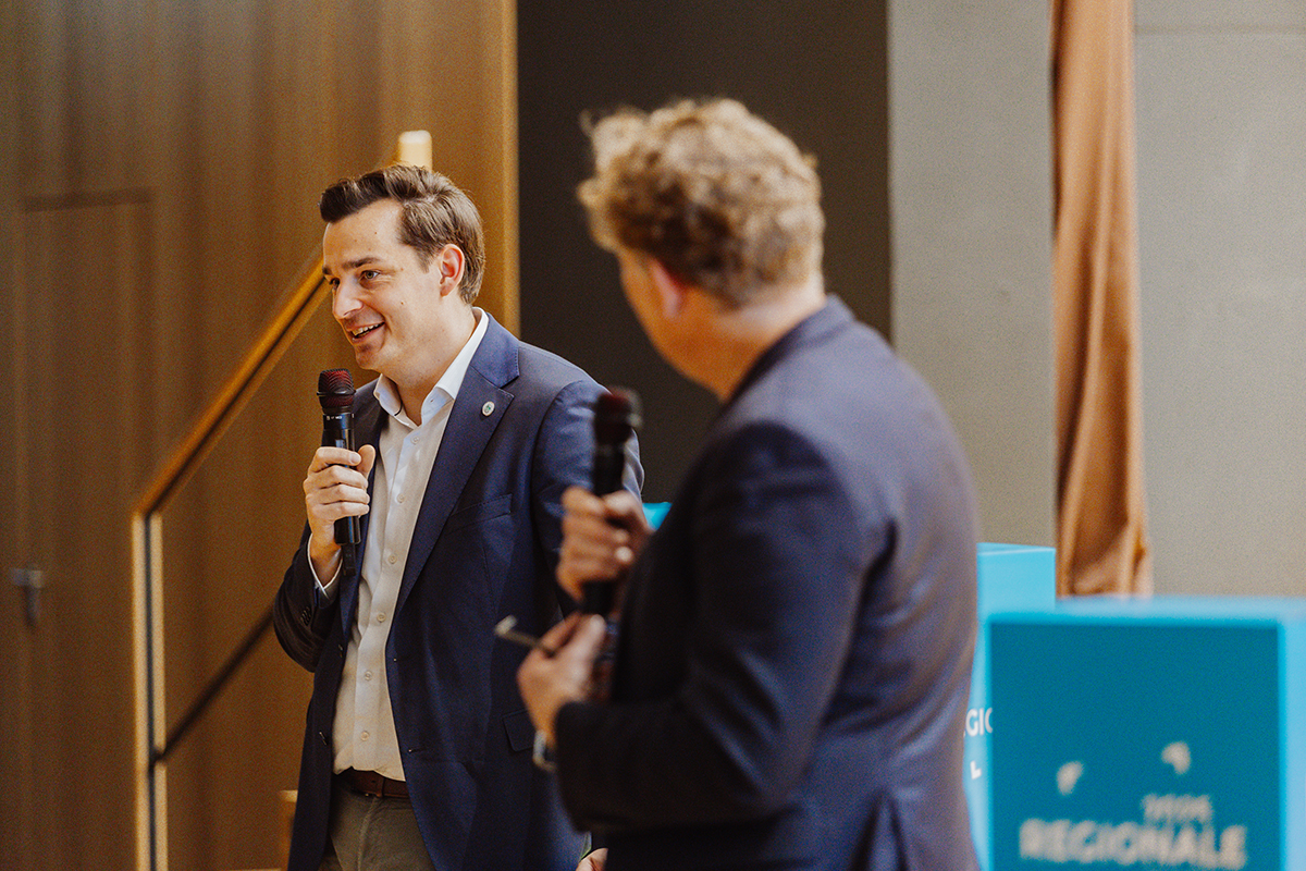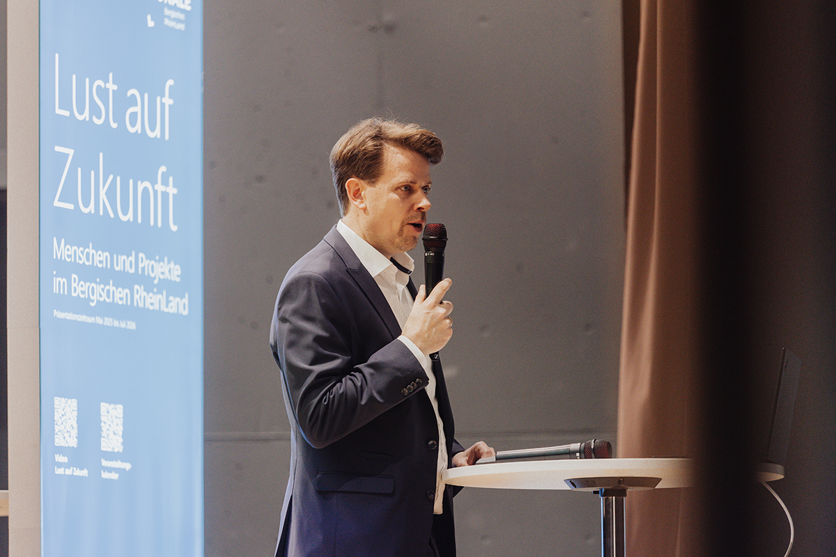 Marcel Kreutz, Bürgermeister der Stadt Bergisch Gladbach sprach über die Herausforderungen der Zukunft im Bergischen RheinLand. Fotonachweis: REGIONALE 2025 Agentur/Julia Holland