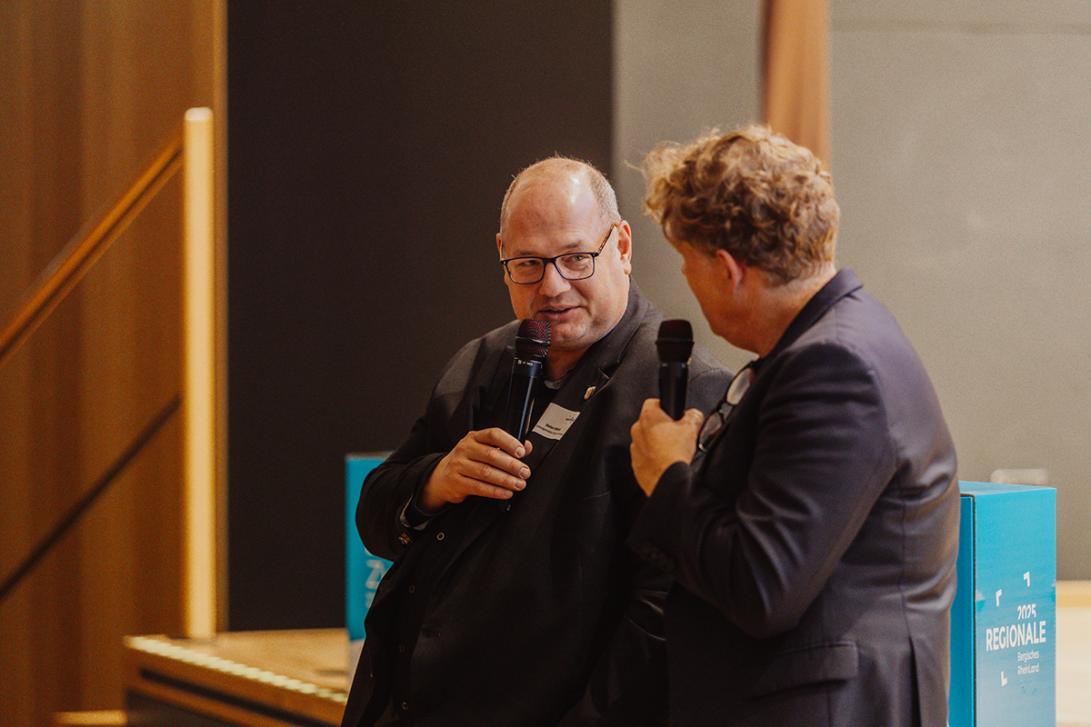 Anschließend diskutierten mit Marcel Kreutz (Bürgermeister der Stadt Bergisch Gladbach), Lukas Miebach (Bürgermeister der Gemeinde Engelskirchen) und Mario Dahm (Bürgermeister der Stadt Hennef) drei Bürgermeister aus dem Bergischen RheinLand über die Wirkung der REGIONALE vor Ort und über zukünftige Herausforderungen. Ein zentrales Thema sei es, die angestoßene Strukturförderung dauerhaft zu verstetigen und auch künftig eng zusammenzuarbeiten – insbesondere bei Fragen der Mobilität und der Gewerbeentwicklung.