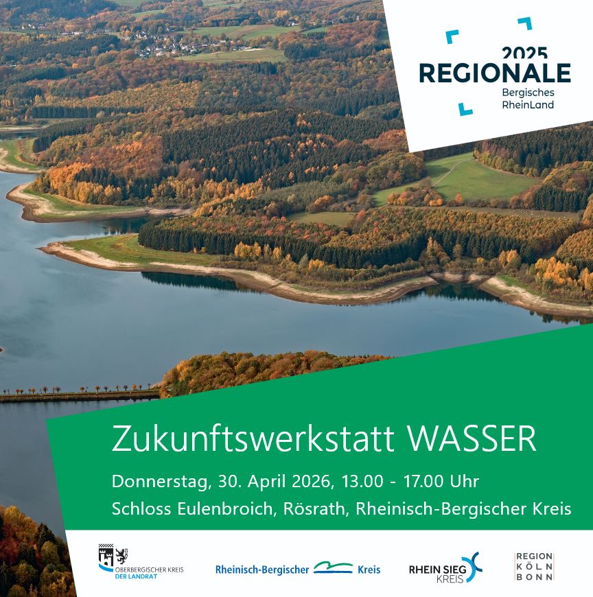 - 30. April 2026: Zukunftswerkstatt „Wasser“, Schloss Eulenbroich, Rösrath (Rheinisch-Bergischer Kreis)